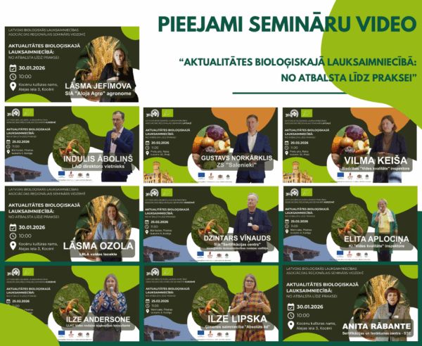 Šī gada sākumā biedrība “Latvijas Bioloģiskās lauksaimniecības asociācija” realizēja trīs informatīvos seminārus “Aktualitātes bioloģiskajā lauksaimniecībā – no atbalsta līdz praksei” Latvijas reģionos – Kocēnos, Preiļos un Kuldīgā, pulcējot bioloģiskos lauksaimniekus, lauku iedzīvotājus un nozares speciālistus.