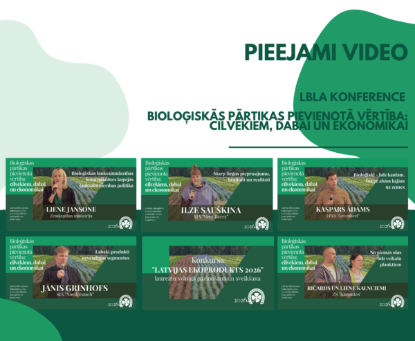 25. martā Rīgā, kultūras centrā «Berģi», notika Latvijas Bioloģiskās lauksaimniecības asociācijas (LBLA) biedru gada kopsapulce un konference «Bioloģiskās pārtikas pievienotā vērtība: cilvēkiem, dabai un ekonomikai». Konferences dalībnieku video ieraksti, kā arī konkursa “Latvijas Ekoprodukts” laureātu sveikšanas video pieejams mūsu Youtube kanālā!